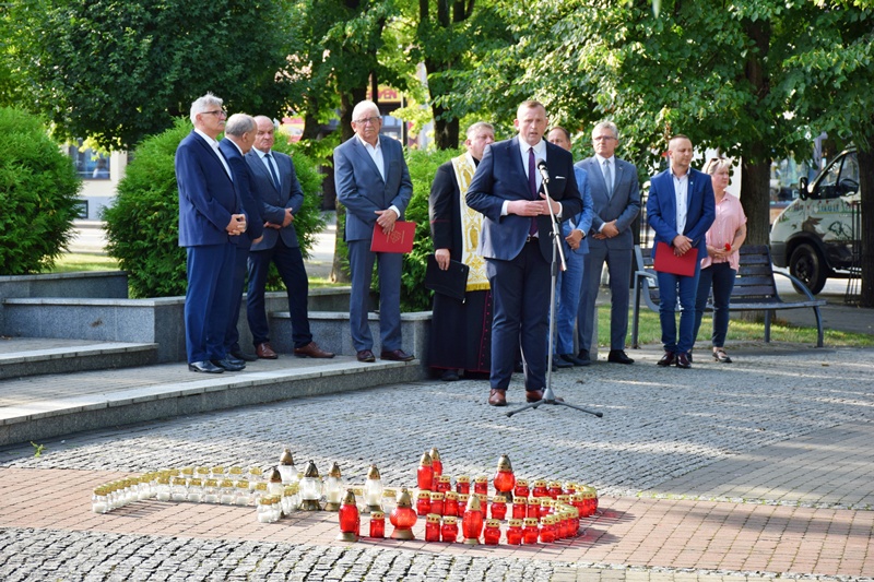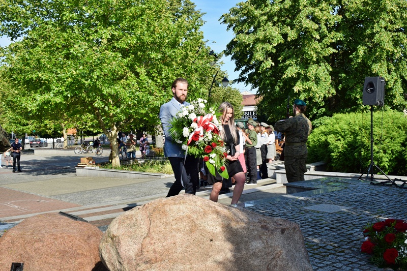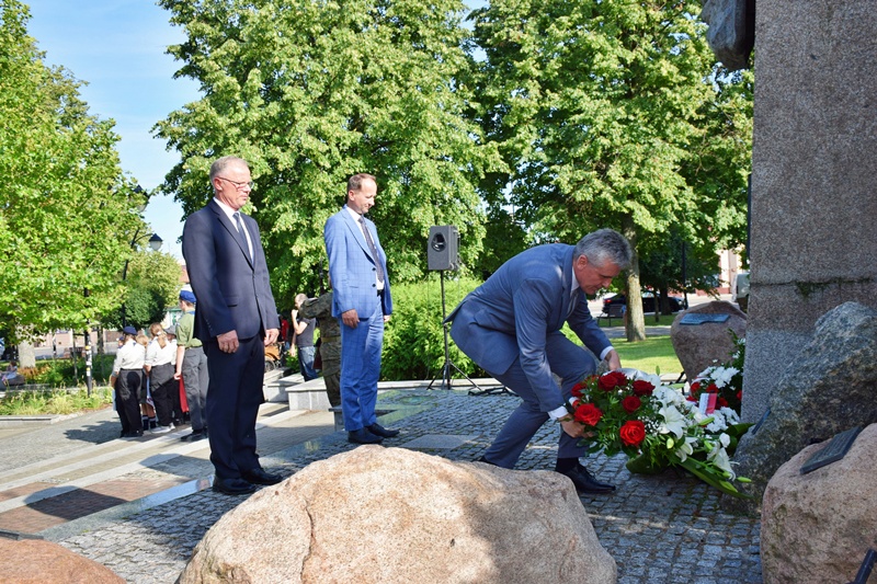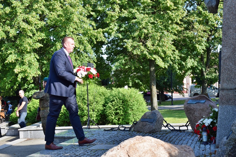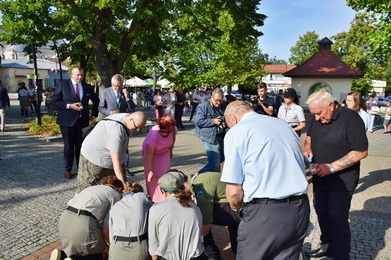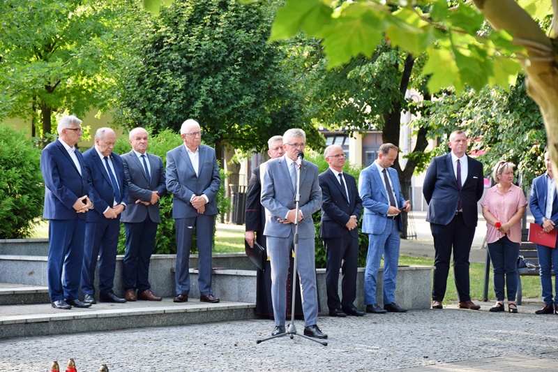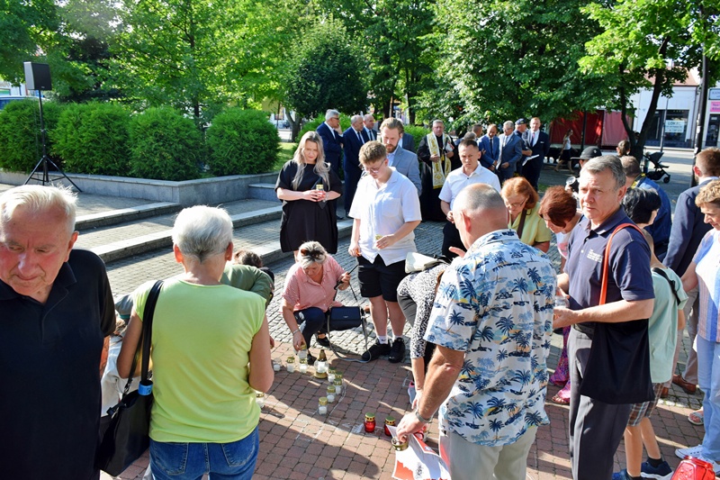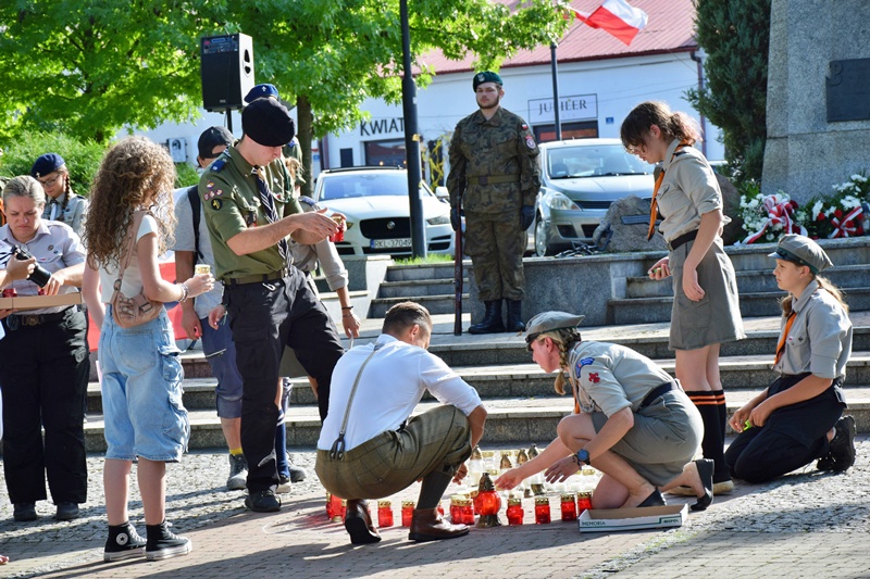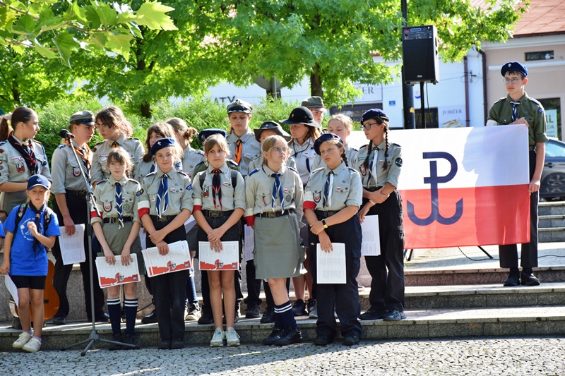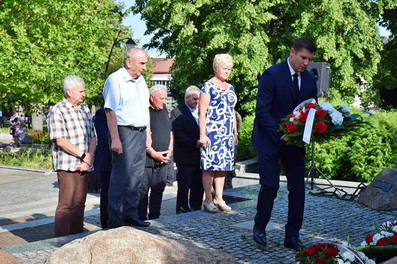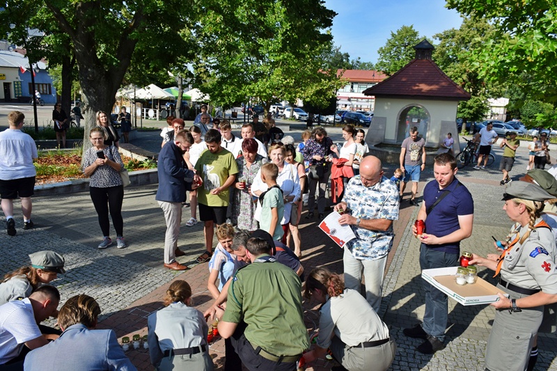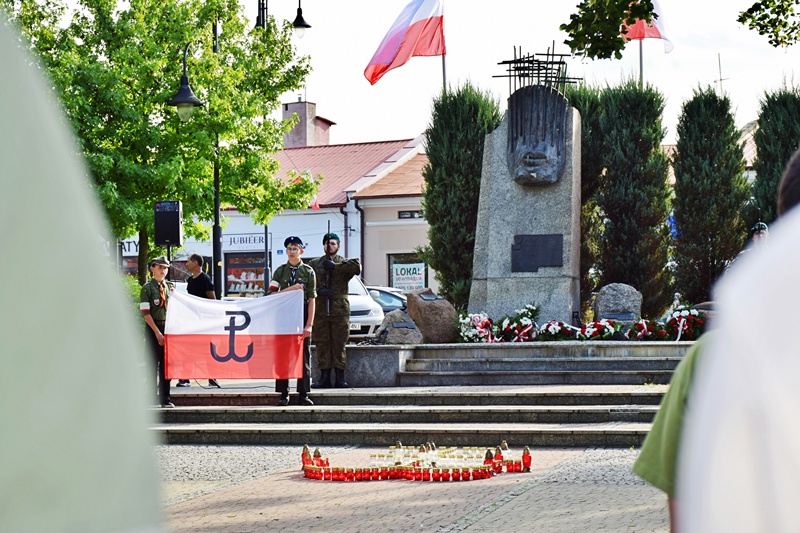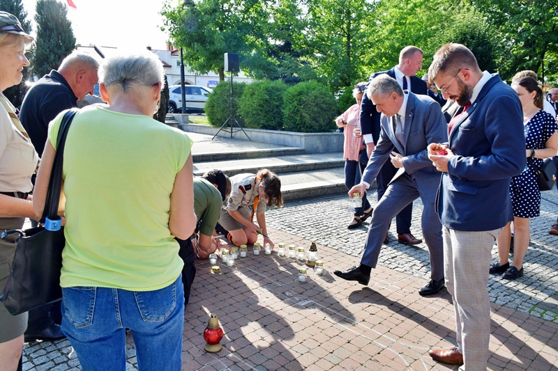 Uroczystości rozpoczęły się wspólną modlitwą, którą poprowadził ks. Dziekan Lucjan Szumierz. Następnie delegacje złożyły kwiaty pod pomnikiem ku czci poległych. Na rynku zapalono znicze, z których ułożono symbol Polski Walczącej. Punktualnie o godzinie 17.00, w godzinę „W”, zawyły syreny, a zebrani zatrzymali się w ciszy, oddając symboliczny hołd poległym powstańcom.