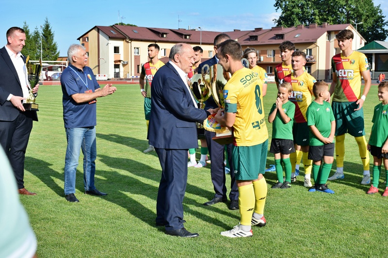 Po oficjalnej części przyszła pora na sportowe emocje. Zespół prowadzony przez trenera Marcina Wołowca rozpoczął sezon z przytupem, pewnie pokonując rezerwy Korony Kielce 3:1 i zdobywając cenne punkty w rozgrywkach. Bramki dla Sokoła zdobyli Volodymyr Khorolskyi, Bartłomiej Wiktor oraz Kamil Posielski.