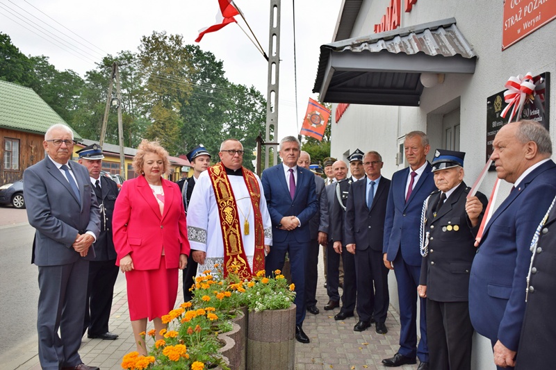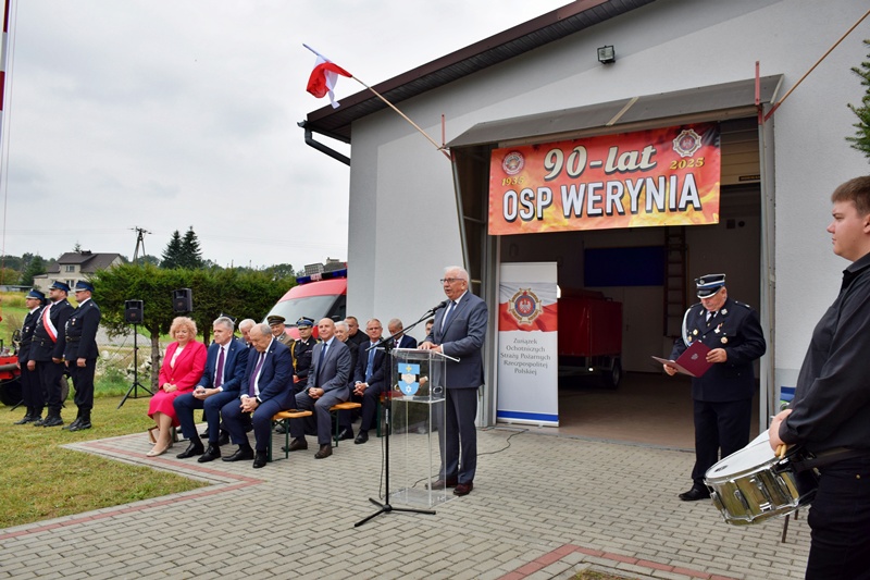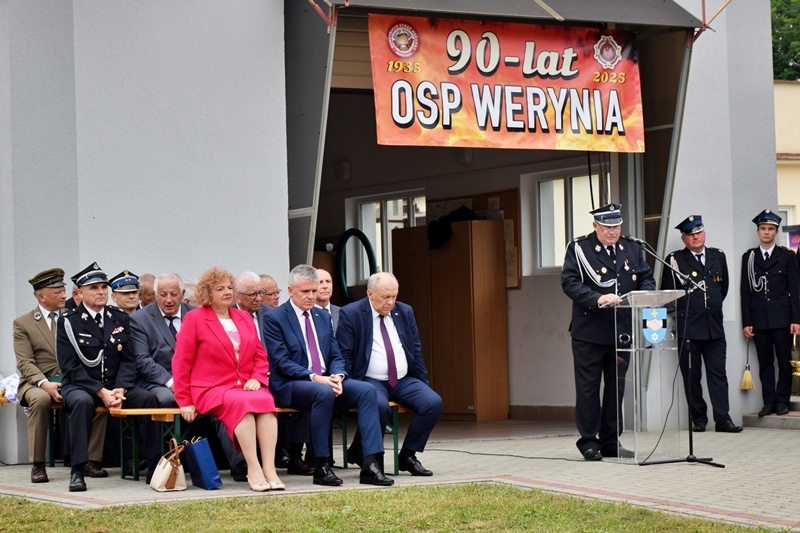 Druhów, zaproszonych gości oraz mieszkańców powitał prezes OSP Werynia, druh Ryszard Skowron, który przypomniał również rys historyczny jednostki. W swoim wystąpieniu podkreślił nie tylko znaczenie strażackiej służby, ale i wdzięczność wobec mieszkańców oraz władz samorządowych za stałe wsparcie. Następnie na budynku remizy odsłonięto pamiątkową tablicę upamiętniającą 90-lecie istnienia jednostki.