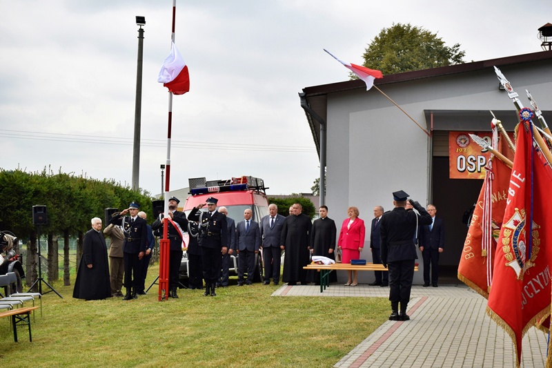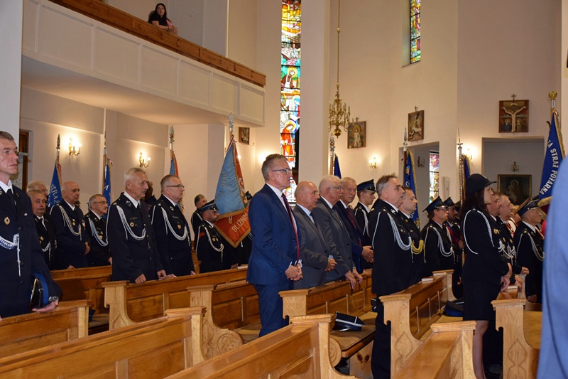 Uroczystości rozpoczęły się od mszy świętej w kościele pw. św. Maksymiliana Marii Kolbego, odprawionej przez ks. proboszcza Piotra Romana oraz ks. seniora Stanisława Wójcika. Po nabożeństwie uczestnicy wraz z pocztami sztandarowymi udali się pod budynek remizy.