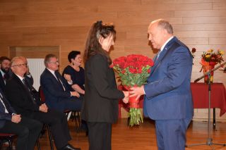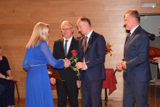 Gratulacje oraz życzenia dalszych sukcesów zawodowych przekazali także obecni na uroczystości goście: Zbigniew Chmielowiec Poseł na Sejm Rzeczypospolitej Polskiej, Piotr Kaczkowski reprezentujący Posła do Parlamentu Europejskiego Tomasza Buczka, Ireneusz Kogut Inspektor ds. Oświaty Urzędu Miejskiego w Kolbuszowej oraz Maciej Przybyło Prezes Oddziału Związku Nauczycielstwa Polskiego w Kolbuszowej.