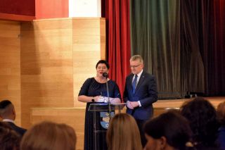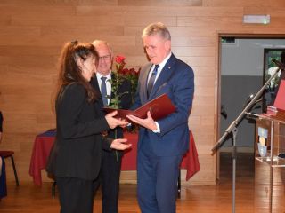Burmistrz Kolbuszowej pogratulował również Pani Helenie Mazan ze Szkoły Podstawowej nr 2 w Kolbuszowej przyznania jej Nagrody Podkarpackiego Kuratora Oświaty, wyrażając uznanie dla jej wieloletniej pracy i osiągnięć w dziedzinie edukacji.