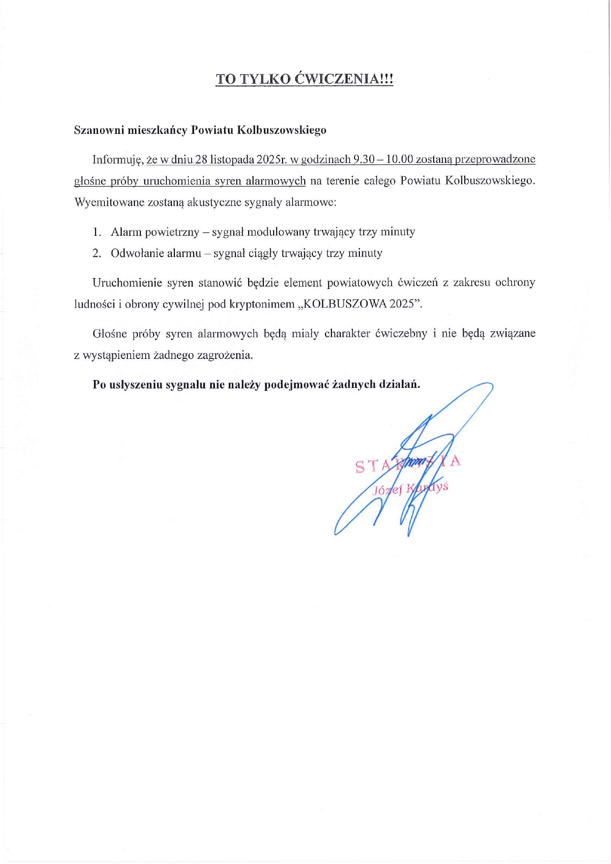 Informacja Starosty Kolbuszowskiego