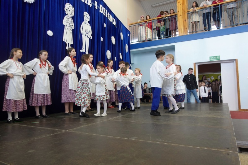 Po oficjalnym powitaniu na scenie wystąpili uczniowie klas 0–III oraz zespół „Lesianie”. Dzieci zaprezentowały swoje umiejętności w tańcach, śpiewie, recytacji i krótkich inscenizacjach. W ten sposób wyraziły miłość, wdzięczność i szacunek dla Dziadków. Szczególnie wzruszającym momentem było wręczenie własnoręcznie przygotowanych upominków. W programie znalazł się również występ uczennicy klasy VIII – Urszuli Reguły, która zaśpiewała specjalnie dla gości. Część artystyczną uświetniła kapela „Lesianie”, wykonując muzykę ludową na żywo. Po zakończeniu występów uczestnicy zostali zaproszeni do wspólnego poczęstunku.