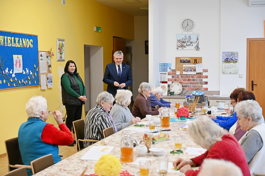 W każdym z tych miejsc czekały na niego serdeczne powitania, rozmowy i uśmiechy. Seniorzy chętnie dzielili się swoimi codziennymi aktywnościami, opowiadali o przygotowaniach do świąt oraz o tym, jak ważne są dla nich takie spotkania. Burmistrz złożył wszystkim obecnym życzenia zdrowia, spokoju, radości i wielu pogodnych chwil, a także wręczył symboliczne wielkanocne upominki.